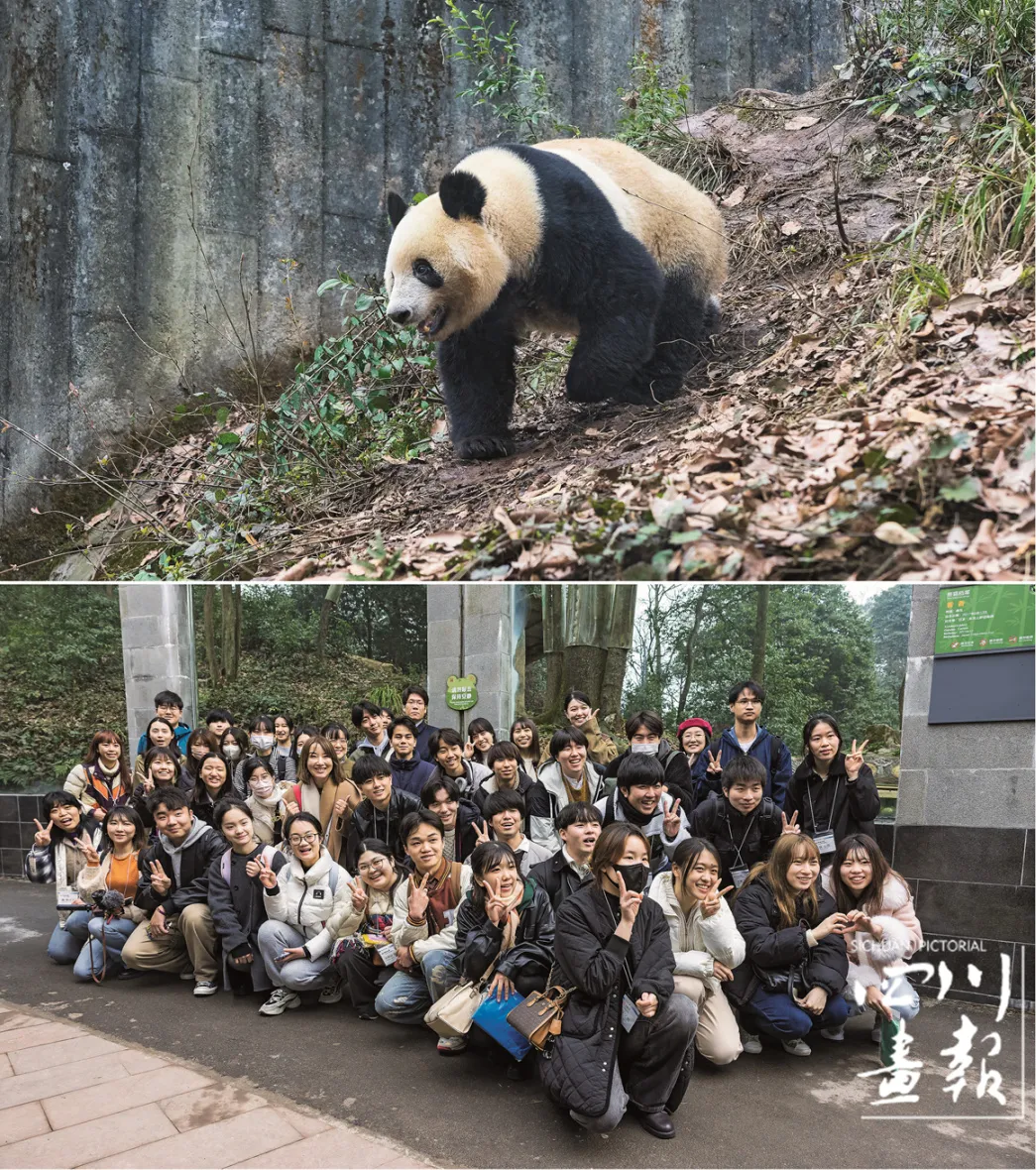 熊猫是跨文化情感连接的桥梁。图为日本大学生在中国大熊猫研究保护中心雅安碧峰峡基地探望旅日归国大熊猫香香(柯尊军 摄)