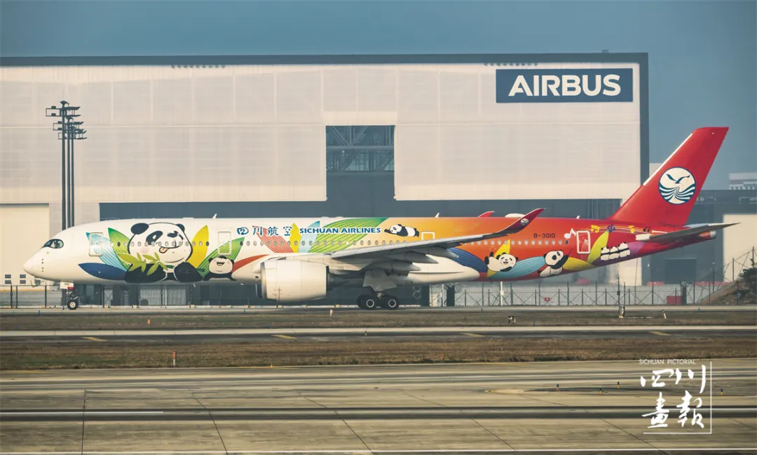 四川航空大熊猫主题彩绘飞机将熊猫文化带往全世界(赵靖影 摄)