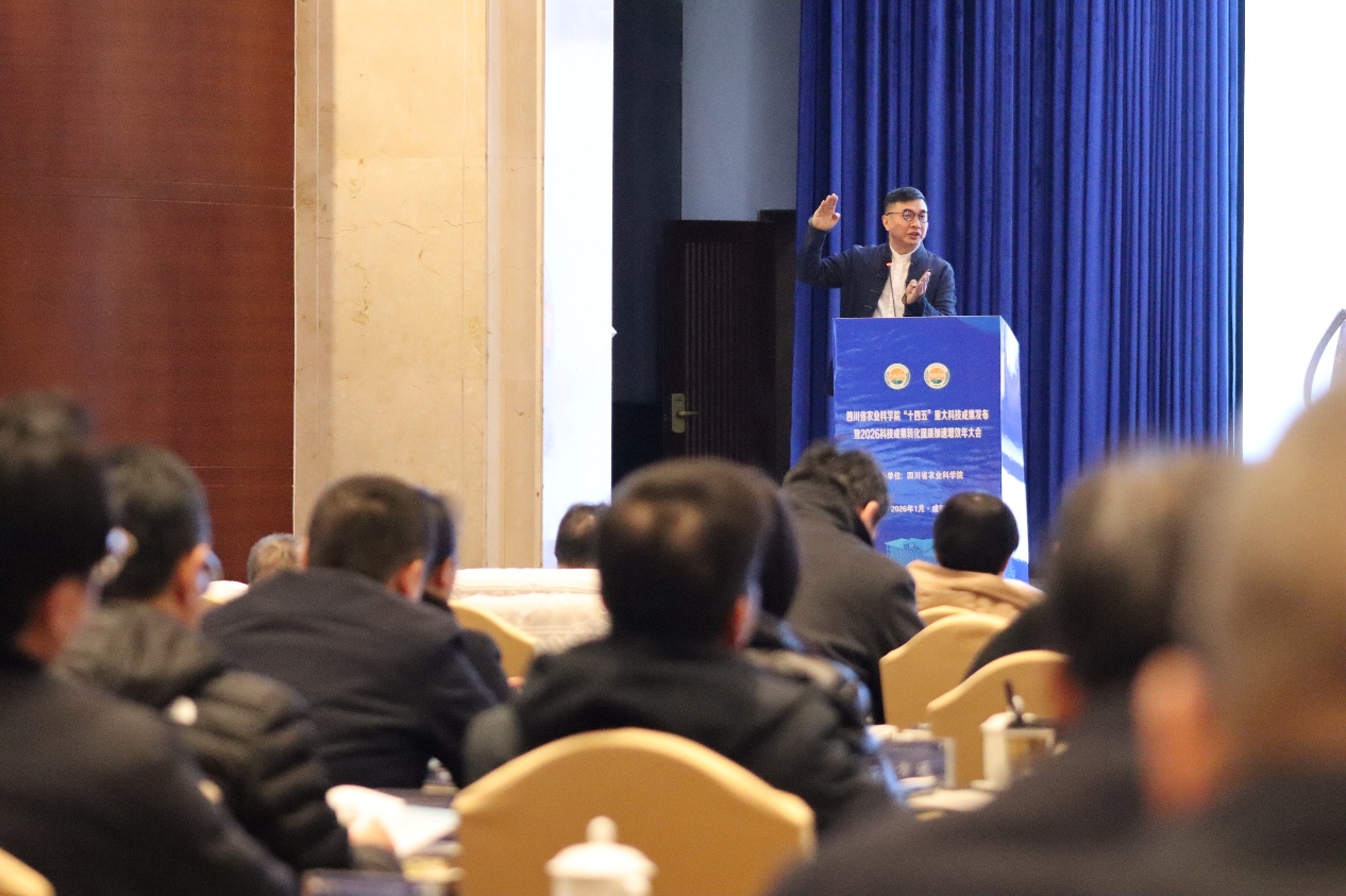 2026年1月21日,四川省农业科学院"十四五"重大科技成果发布暨2026科技成果转化提质加速增效年大会在成都望江宾馆五福堂隆重召开。本次大会为期两天,汇聚了行业专家、企业代表及相关领导,集中展示了省农科院"十四五"期间的科技创新成果,明确了"十五五"期间的发展方向,并聚焦科技成果转化与农业产业高质量发展等核心议题。